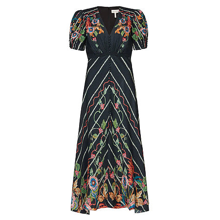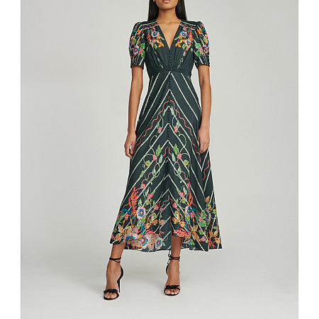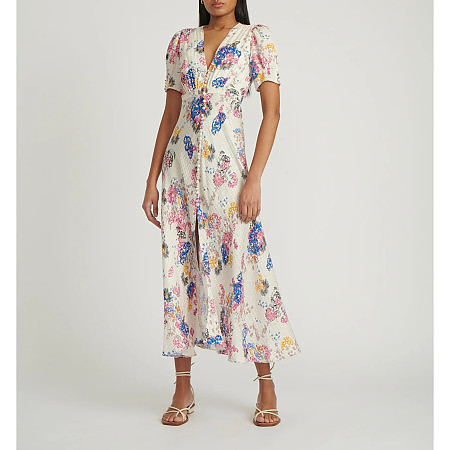 De La Vali Suki Magnolia Print Long Dress
