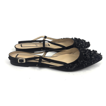 Hangisi Satin Crystal Buckle Flats